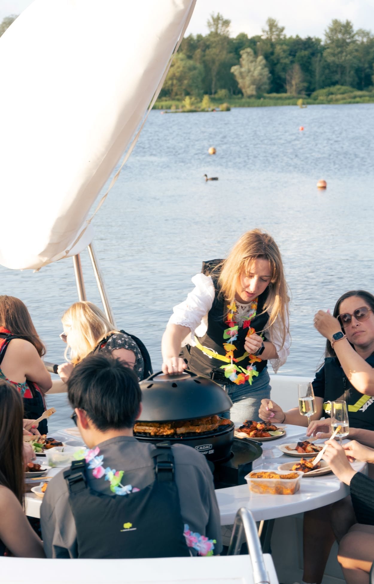Each boat is equipped with a built-in barbecue grill and comfortable seating for up to 10 people, allowing guests to enjoy a relaxed, on-water dining experience. The boats are fully electric and require no license to operate, with full safety briefings provided before departure.