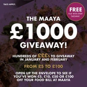 Maaya Indian Kitchen & Bar is asking people to share their wins on social media by using the hashtag #MaayaGiveaway, to celebrate their winners and help spread the word.