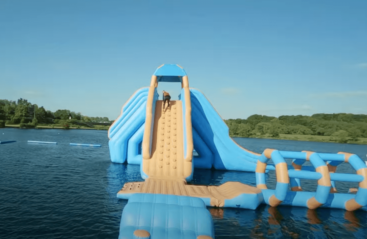Introduced to the 450-metre-long inflatable water park last year, the ‘Mammoth’ stands at 30ft tall and features a daring 20ft ‘cliff jump’ – making it ones of the biggest attractions in Milton Keynes.